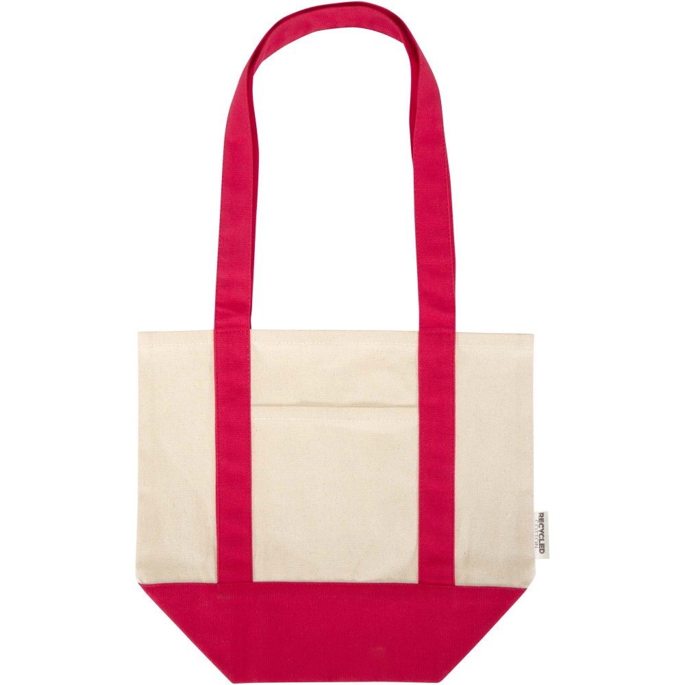 100% újrahasznosított pamutból készült, GRS tanúsítvánnyal rendelkező Sam bevásárlótáska tökéletes választás piknikezéshez vagy bevásárláshoz. A 320 g/m2-es anyagsűrűség robusztussá és tartóssá teszi a táskát, a dupla fülnek köszönhetően pedig alkalmas nehezebb tárgyak szállítására is a főrekeszben max. 5 kg-ig.
