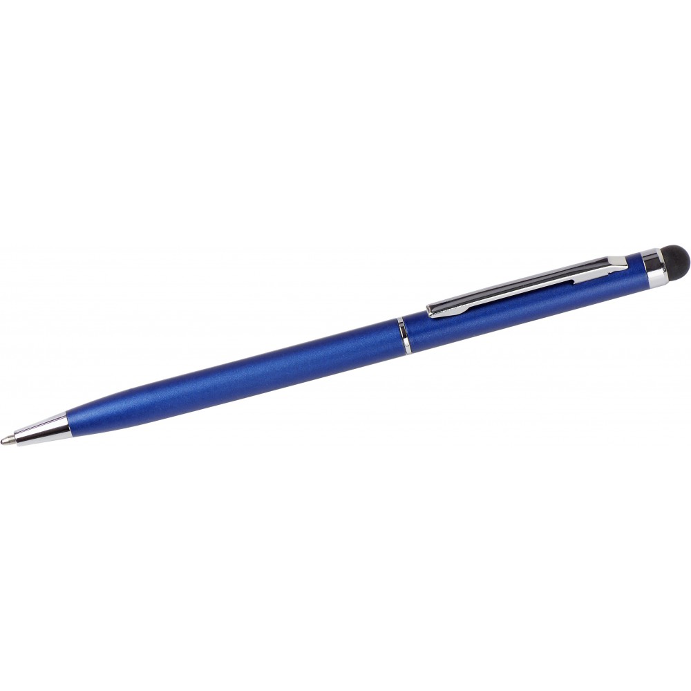Alumínium golyóstoll gumi érintővel, kék tollbetéttel.