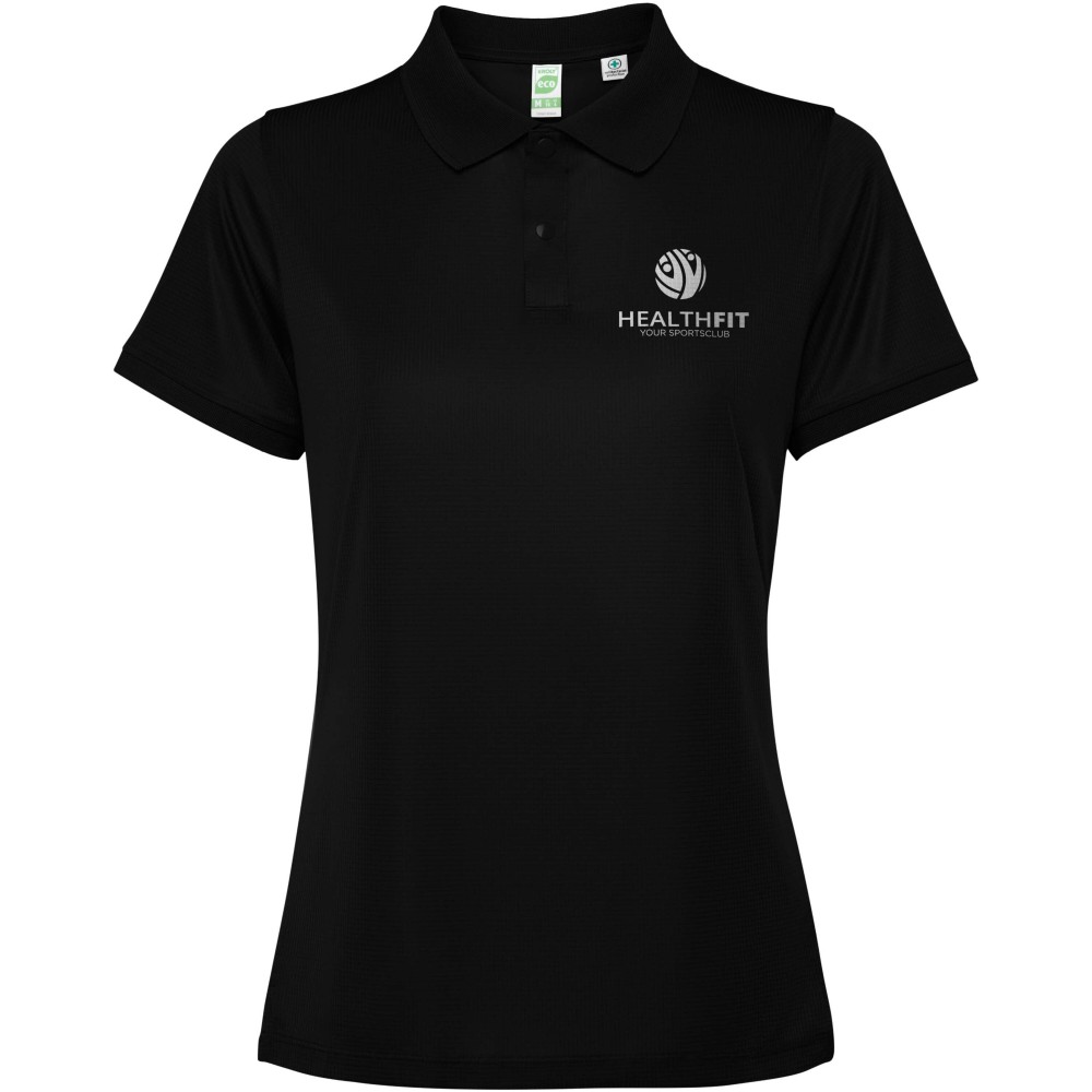 Rövidujjú galléros női póló. Erősített, fedett varrások a belső gallérban. 1x1 bordázott kézelő és gallér. Oldalsó varrások. 3 gombos nyakrész és oldalsliccek. 120g/m2.