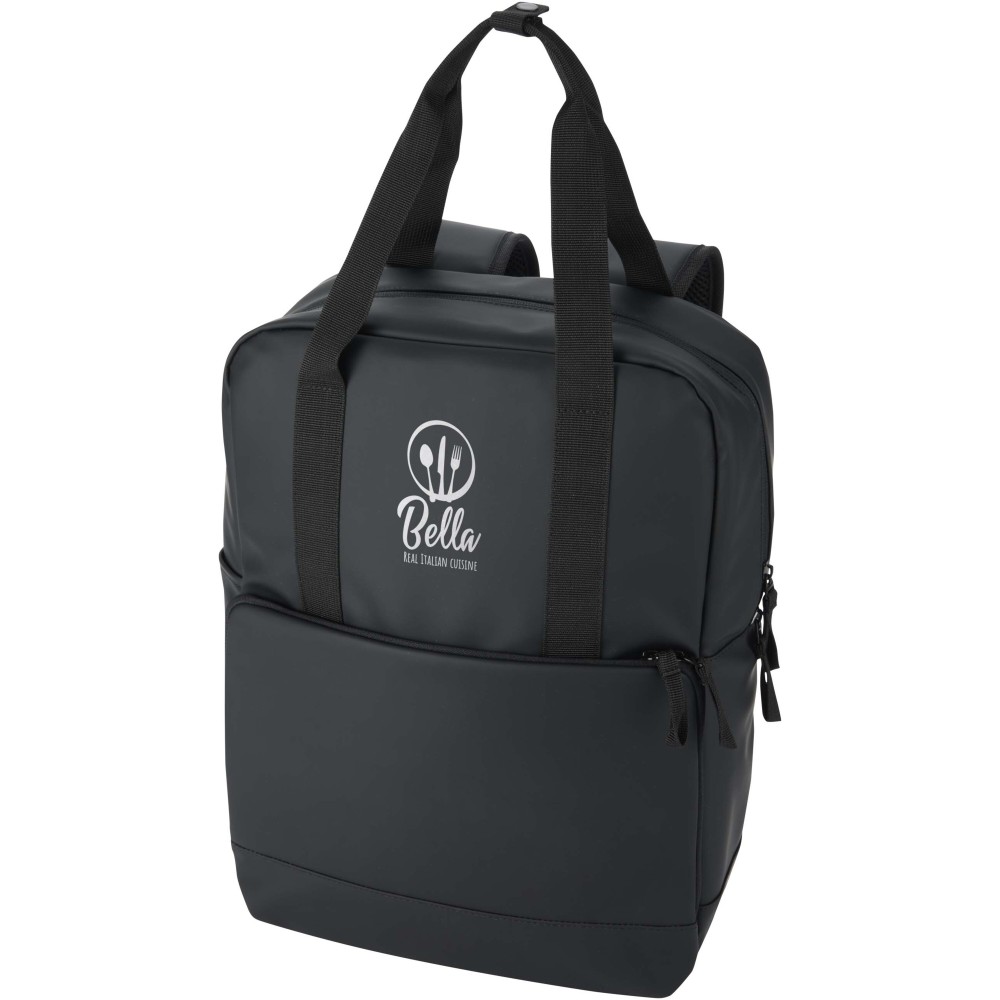 Ez a 18 literes hűtőhátizsák GRS tanúsítvánnyal rendelkező, újrahasznosított PU-műbőrből készült, színben harmonizáló RPET béléssel, így ideális választás szabadtéri programokhoz. A tágas főrekesz kiváló minőségű PEVA béléssel és vastag PE habszigeteléssel biztosítja az ételek és italok hűtését, míg a belső rugalmas pántok stabilan rögzítik a borospalackokat. A termék egy nagy méretű, párnázott elülső cipzáras zsebbel rendelkezik az extra védelem érdekében, az oldalsó nyitott zseb pedig gyors hozzáférést biztosít a kulacsokhoz. A kényelmes viseletről a légáteresztő hálós hátrész, valamint az állítható és párnázott vállpántok gondoskodnak, így praktikus kiegészítő piknikezéshez, strandoláshoz vagy kempingezéshez.