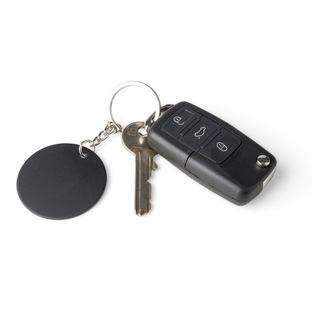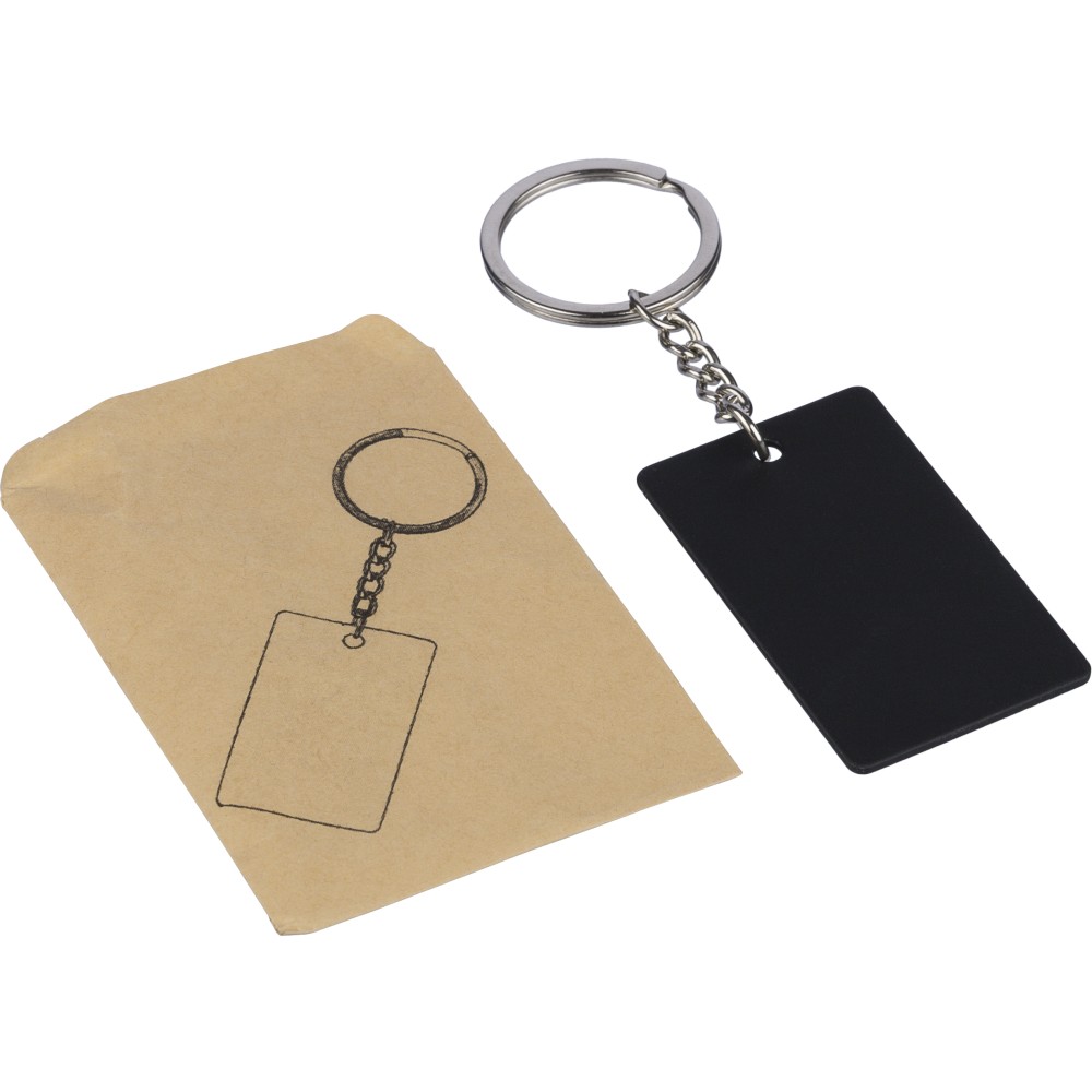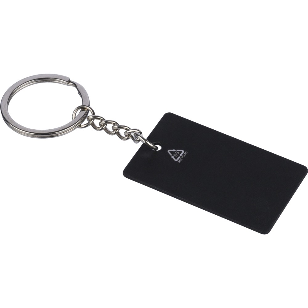 Újraacél négyszög kulcstartó, fekete