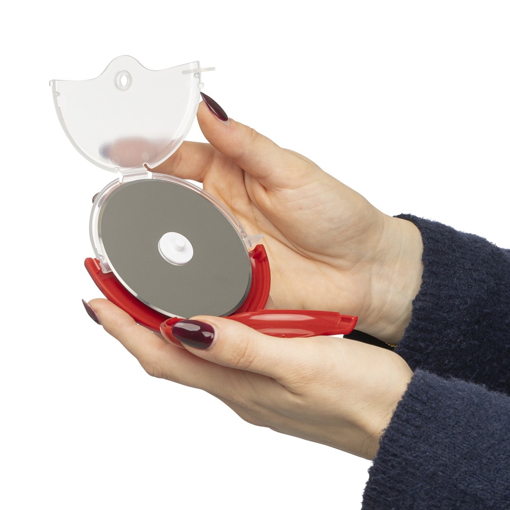 ABS és PP anyagból készült pizzavágó 430-as rozsdamentes acél pengével, kivehető védőborítással, amely könnyen felpattintható a tisztítás és a penge elérése érdekében. Újrahasznosított polietilén tasakba csomagolva.