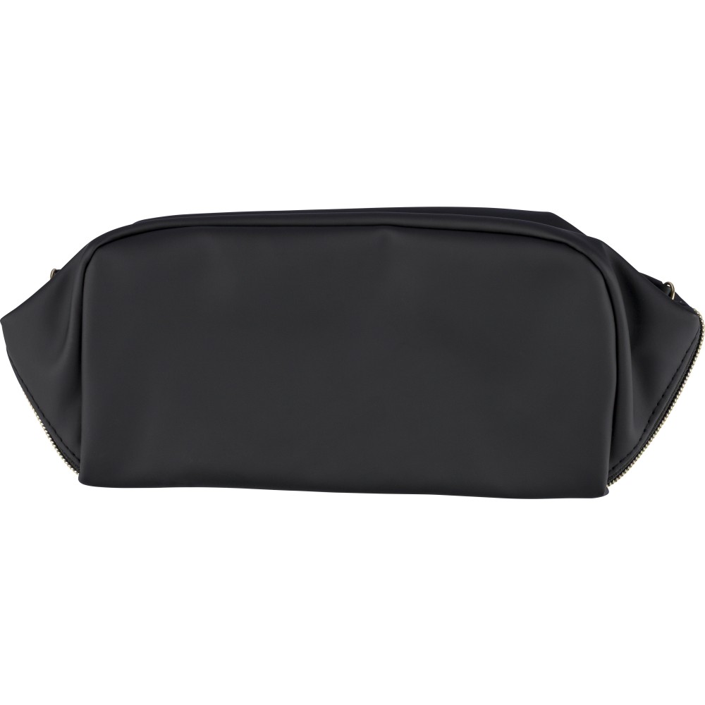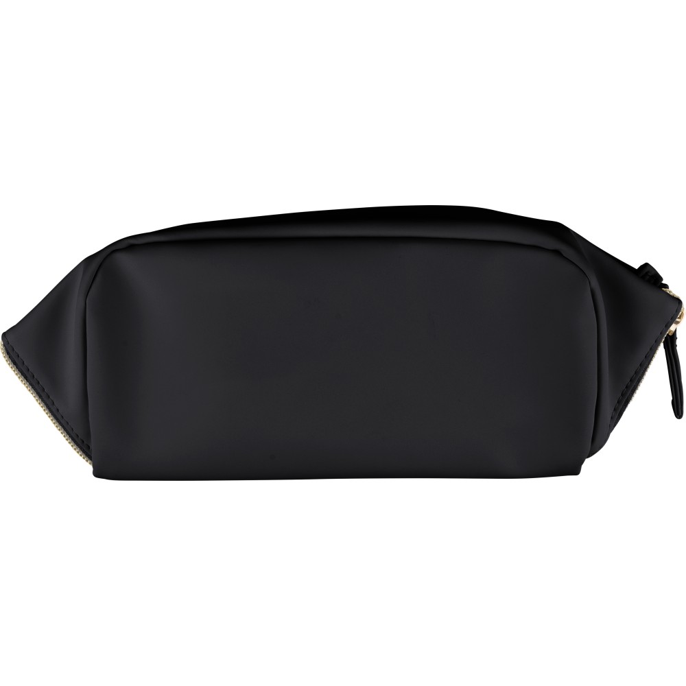 Újrahasznosított PU anyagból készült neszesszer középen elhelyezett cipzárral a széles nyithatóság érdekében. Rövid fogantyúval, tágas belső térrel és négy rekesszel, beleértve egy belső cipzáras zsebet. 210D újrahasznosított béléssel készült, belsejében egy újrahasznosított alapanyagra utaló címkével.