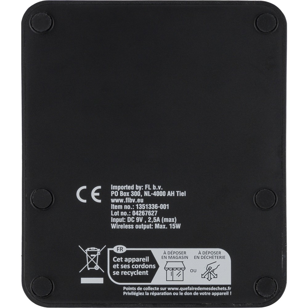Vezeték nélküli töltő, újraműanyag, fekete