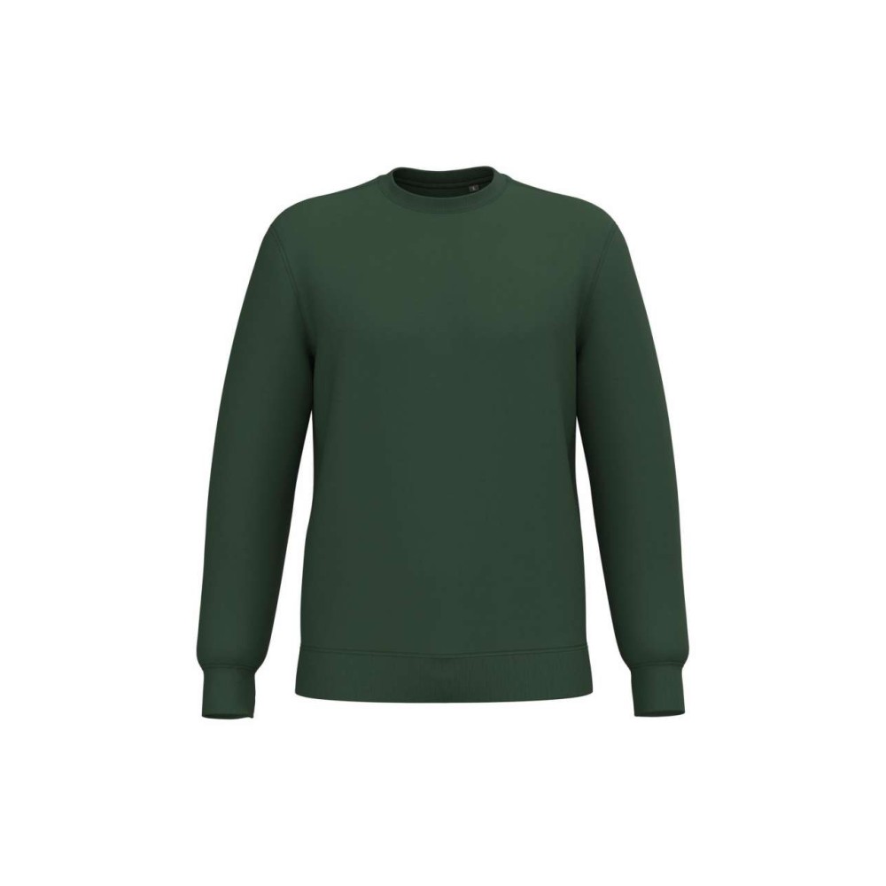280 g/m2, 50% gyűrött pamut/50% újrahasznosított poliészter. Csiszolt polár anyag, egyenes szabás, környakas fazon. Vágott és varrott, 1x1 bordás, csőszerű összeállítás a nyakvonal, a mandzsetták és az alsó szegély jobb kiviteléért. Tónusban megegyező jersey szalag a nyakvonal belsejében. Nincs márkajelzés a nyakvonalon, csak méretcímke a könnyű dekorálás érdekében.