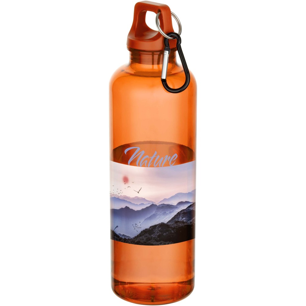 Az RCS tanúsítvánnyal rendelkező RPET-ből készült, tartós, mégis könnyű, 750 ml-es kulacs lehetővé teszi a folyamatos hidratálást. Tökéletes kísérő sportoláshoz, kirándulásokhoz vagy irodai használatra. A szimplafalú Oregon palack csavaros kupakkal rendelkezik, és bőséges felületet kínál bármilyen logó elhelyezésére. A mellékelt karabiner segítségével (mely mászásra nem alkalmas) a kulacs biztonságosan táskához rögzíthető. A termék megfelel az EFSA által jóváhagyott PET újrahasznosítási szabályoknak.