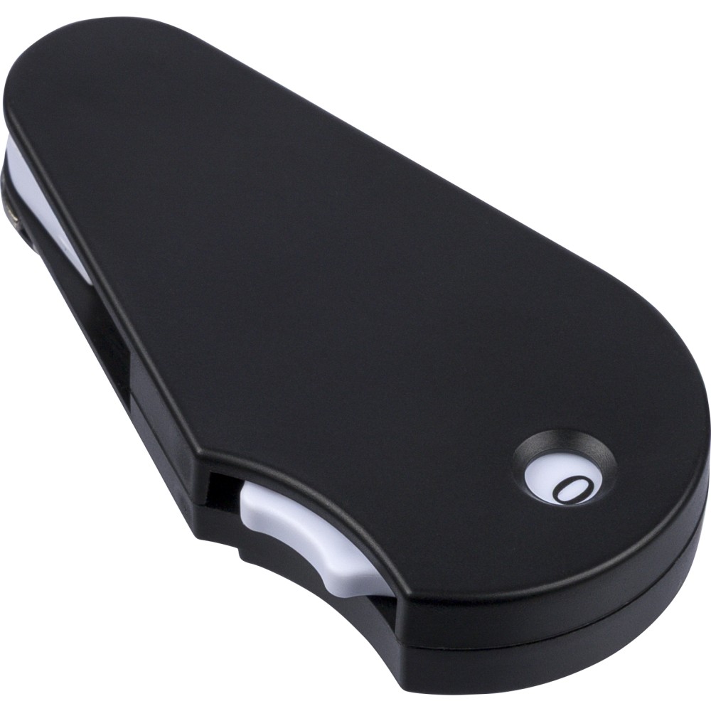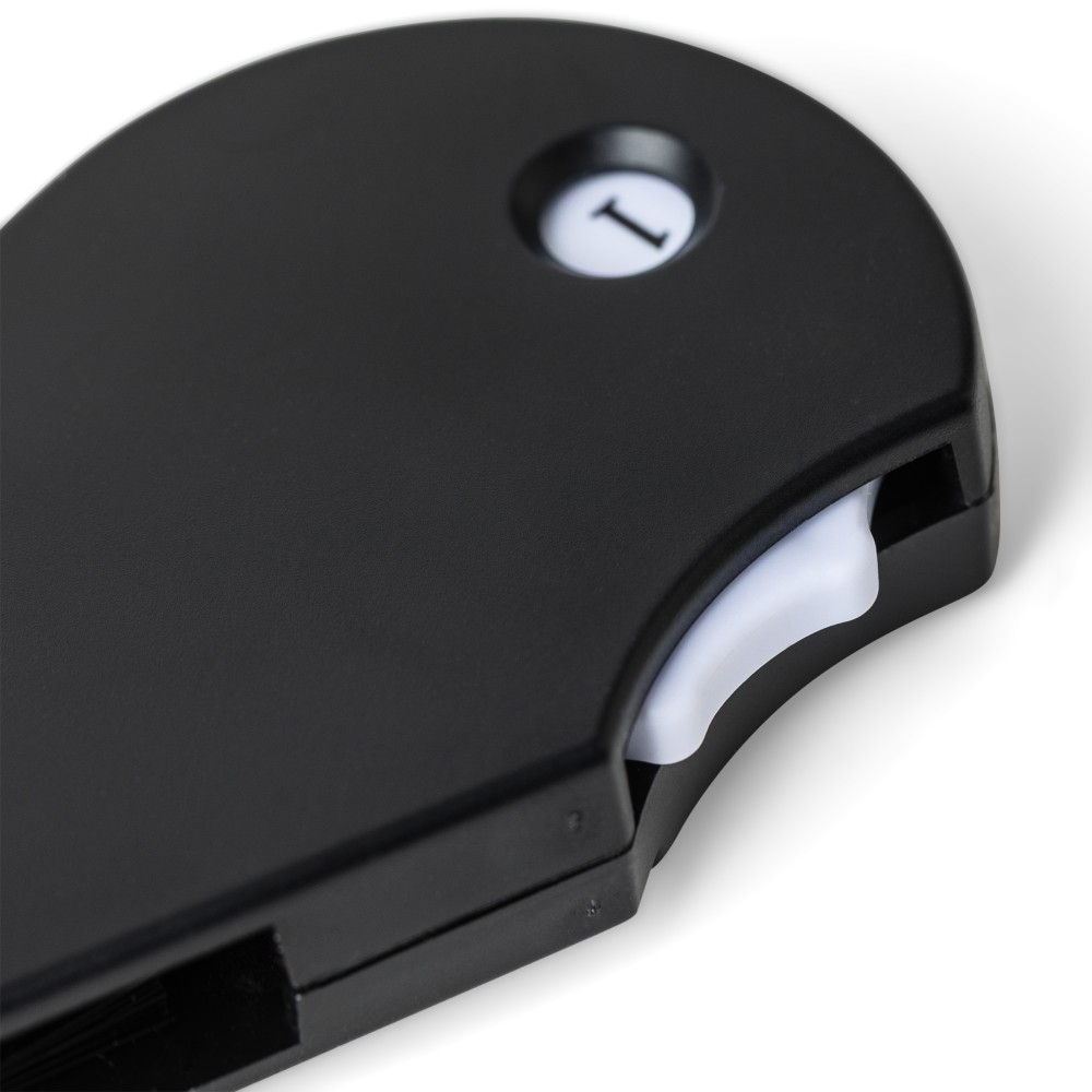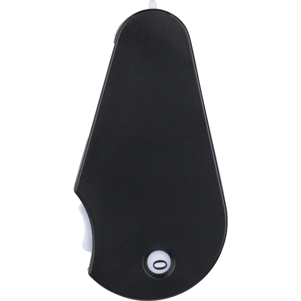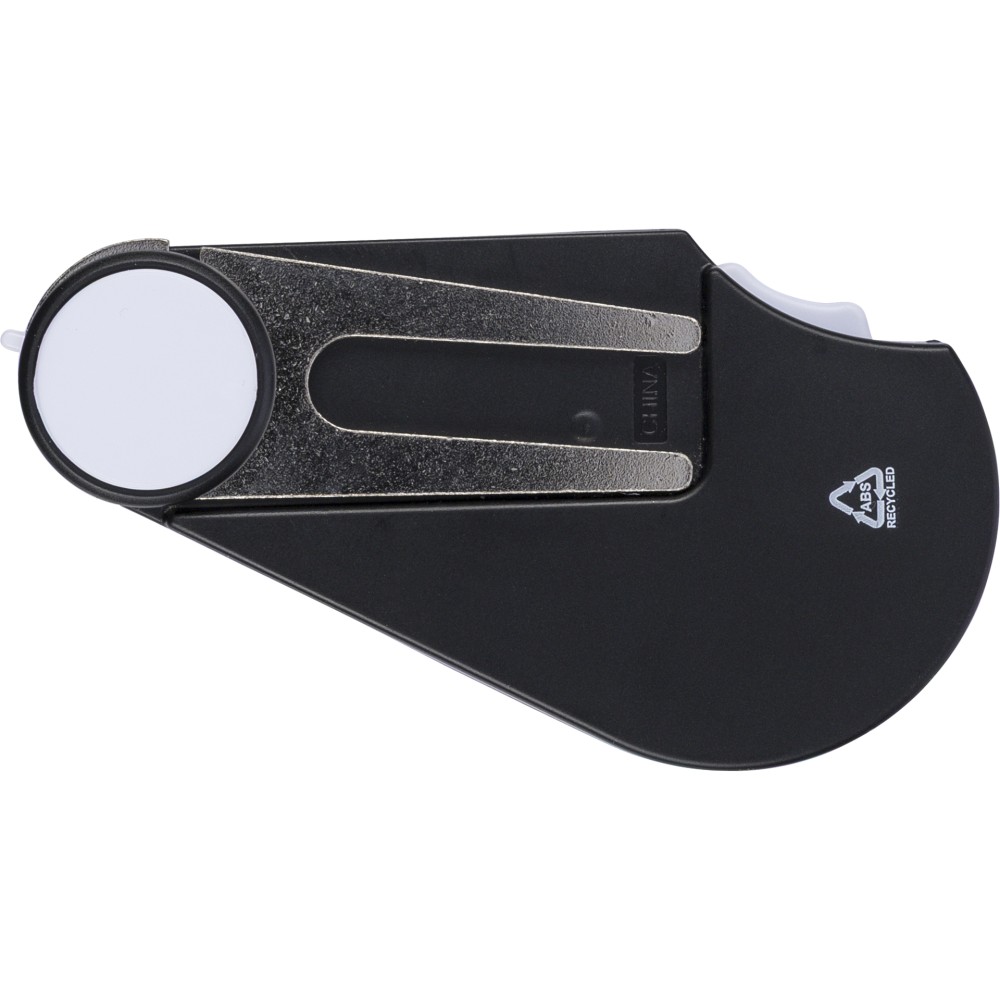 Újrahasznosított ABS anyagból készült multifunkciós golfeszköz beépített jelölővel, pitch forkkal, tisztítókefével és pontszámlálóval. A hátoldalon recycled (újrahasznosított) alapanyagra utaló logó található. Újrahasznosított polietilén tasakba csomagolva.