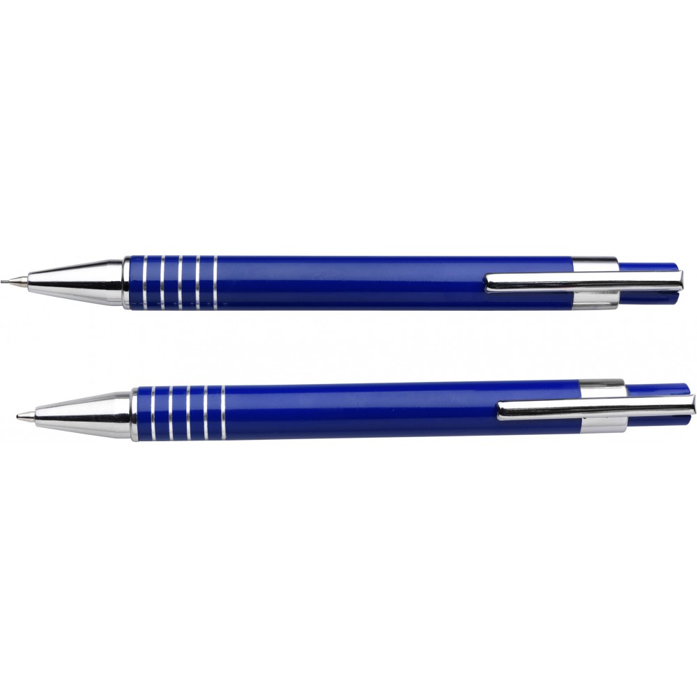 Lakkozott felületű golyóstoll fekete tollbetéttel és töltőceruza, színben hozzáillő dobozban.